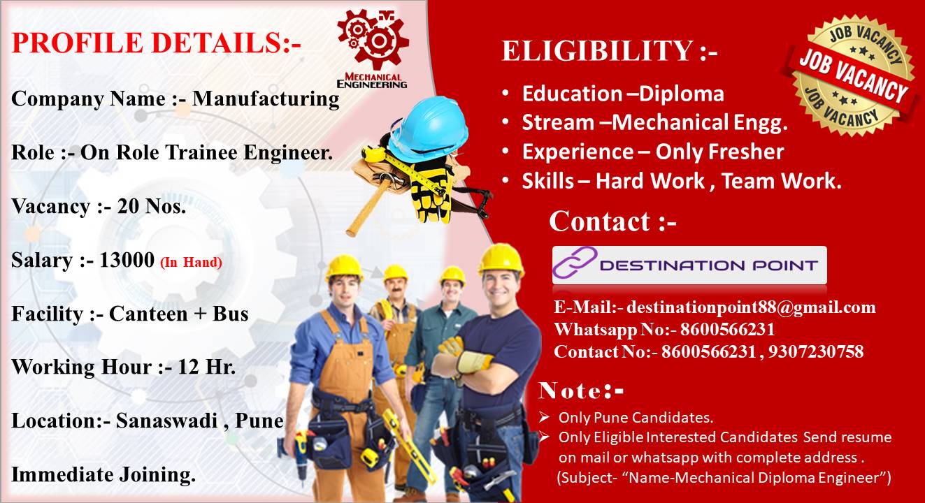 تويتر Destination Point Placement Services Pune على تويتر Hiring For Mechanical Diploma Trainee Engineer Job Jobseeker Jobs Mechanical Mechanic Diploma Technician Technical Interview Vacancy Pune Punejob Jobinpune